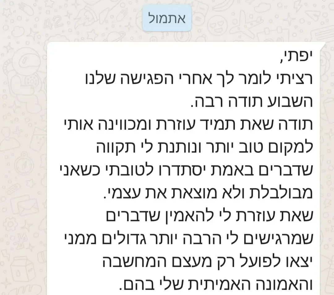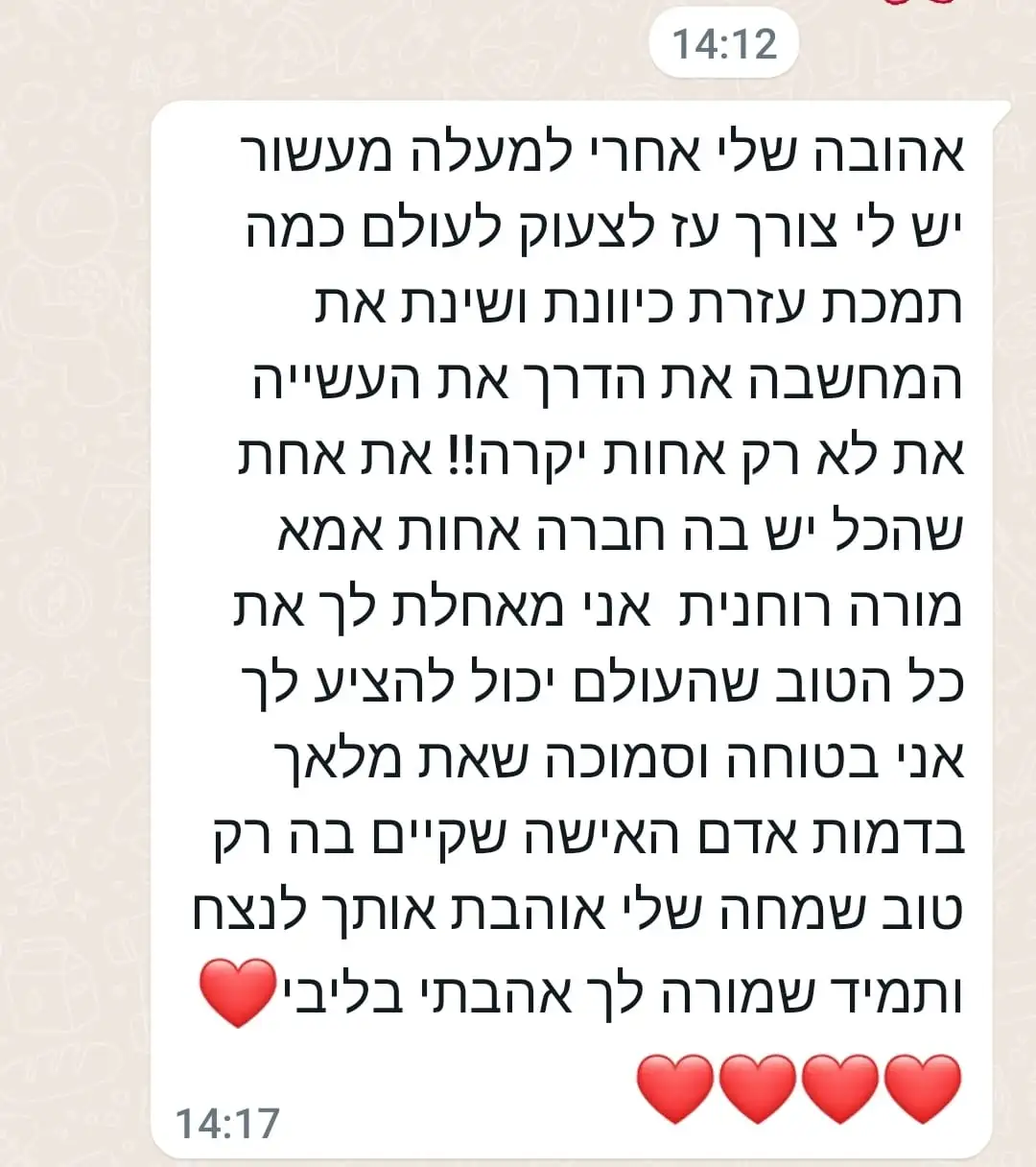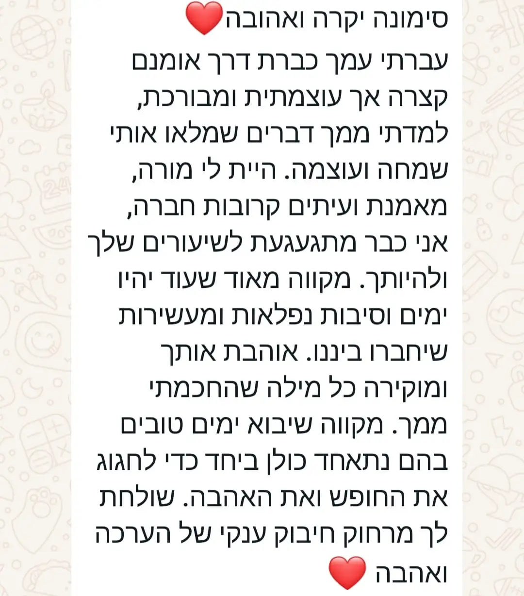 שלחו לי הודעה ונעבור על פרטי התכנית.